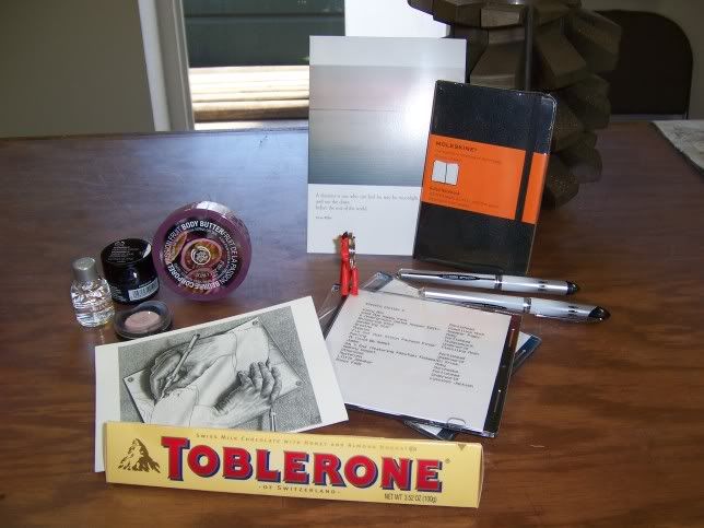 In this first picture, we have a shotglass that says Motown, a vase-type thing (I think), some white chocolate, lip balm, and a Michigan pen. You must be psychic or something, because I collect shot glasses, and love white chocolate! Or maybe I mentioned that, I can't remember. Either way - too cool for words!